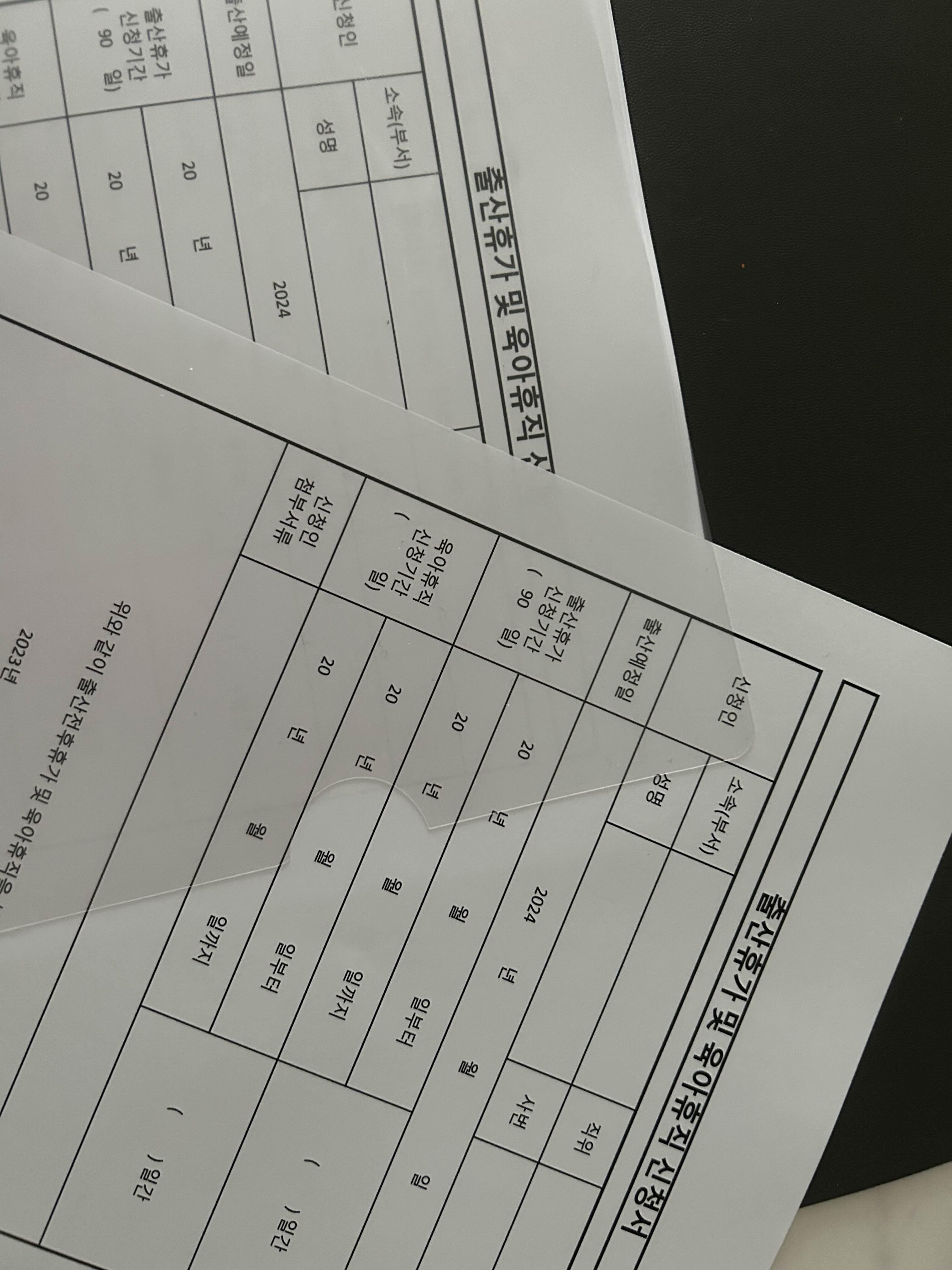 회사마다 준비해야 되는 필요 서류가 다르기 때문에 먼저 회사 측에 문의를 해야 하고, 근로자는 임신 중 육아휴직 신청서와 출산 예정 증명서가 기입되어 있는 임신확인서를 제출하였습니다. 이제 회사 측에서는 3개월간 통상 임금을 확인할 수 있는 서류인 휴가 3개월간의 월급 증명이 가능한 임금 확인서, 근로계약서, 육아휴직 확인서를 고용노동부에 제출을 하면 되고 근로자는 육아 휴직 급여 신청서, 저와 같이 임신 중 육아휴직을 사용하는 경우는 육아 휴직 당시 임신 중이었음을 증명할 수 있는 출산 예정 증명서를 첨부하면 되며, 출산 후에는 부모와 자녀 확인이 가능한 주민등록등본을 제출하면 된다.